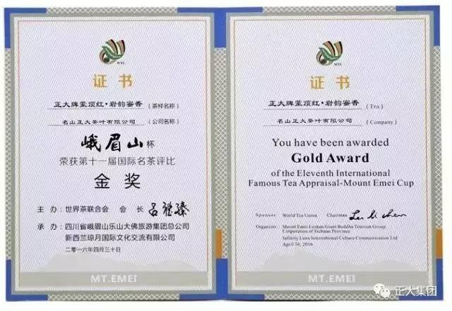 ▲正大牌蒙頂紅?巖韻蜜香榮獲第十一屆國(guó)際名茶評(píng)比金獎(jiǎng)