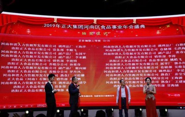 2019年1月21日,“龍頭騰起攬全月,鴻鵠展翅傲中原”——正大集團河南區(qū)食品事業(yè)2019新春年會洛陽東華大酒樓盛大召開。正大集團農(nóng)牧食品企業(yè)(中國)副董事長王鴻章、正大集團河南區(qū)食品事業(yè)***總裁王學(xué)斌、正大集團河南區(qū)產(chǎn)業(yè)化總裁宋小兵及河南區(qū)食品事業(yè)各公司部門主管、員工代表300余人齊聚一堂,共享盛典。年會特邀河南東方正大有限公司洛陽飼料廠董事長茹懷智、中方副總經(jīng)理黃天發(fā)及河南和諧人力資源開發(fā)有限公司董事、總經(jīng)理王縣委、副總經(jīng)理張麗云參加。